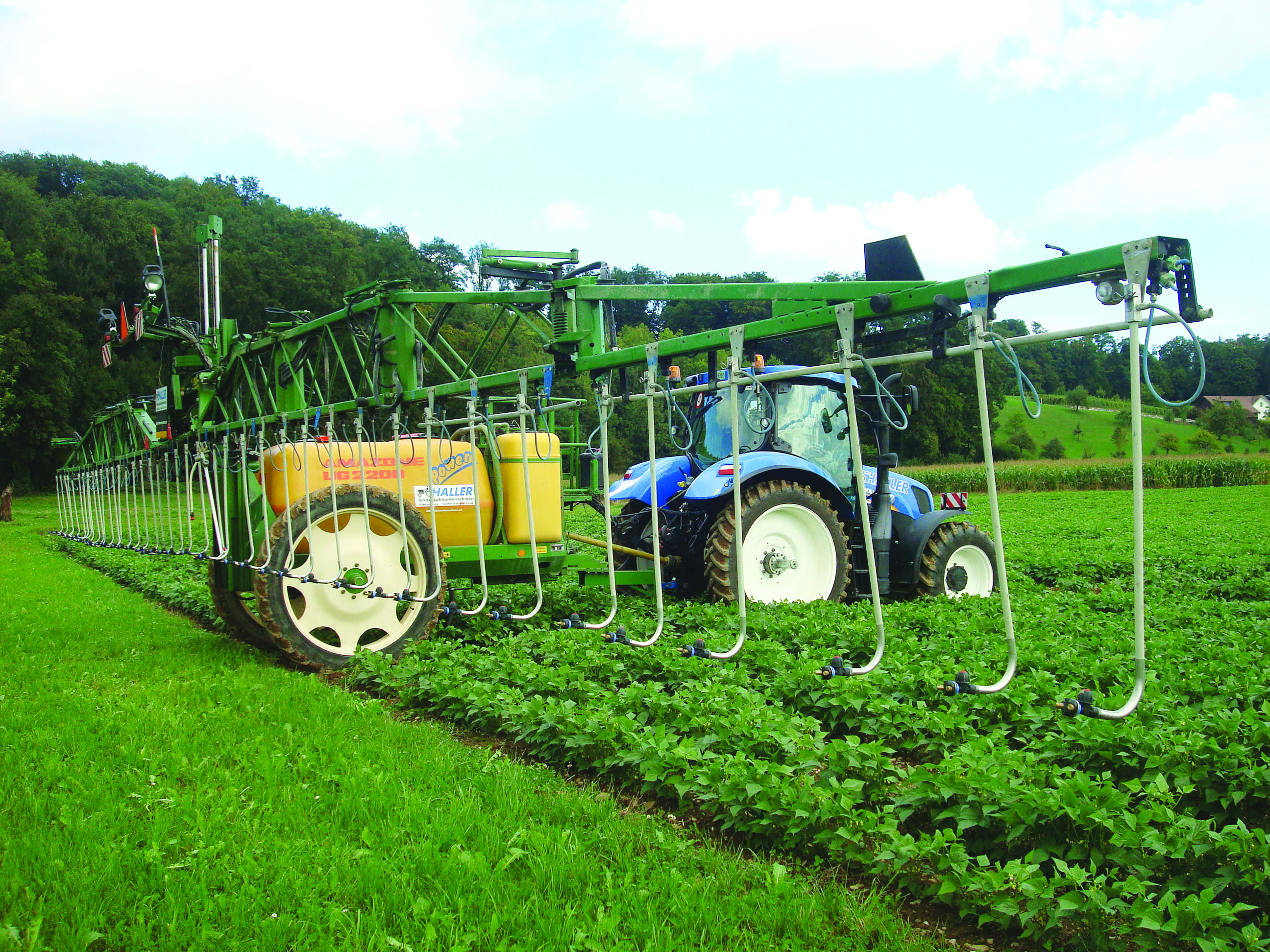 Le traitement en bandes joue un rôle particulier dans la technique d'application. L'utilisation de cette technique est possible dans les cultures en ligne ou lors du travail mécanique. Avec un équipement approprié, le traitement en bandes peut également être effectué avec le pulvérisateur (système de conduite en parallèle et rangs droits nécessaires). Le traitement par bandes peut contribuer à économiser des intrants et à préserver l'environnement, car moins de surface est traitée. Le traitement par bandes est encouragé par le biais de contributions au système de production.