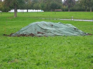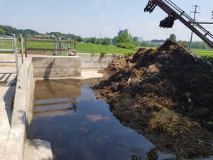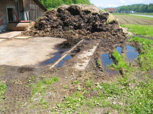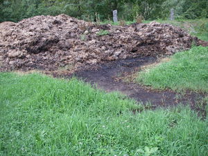 Le fumier est correctement entreposé sur la fumière. Le jus de fumier ne fuit pas.
