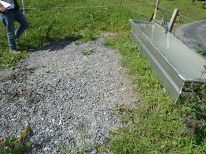 Autres aires d’exercices : il n'y a pas de bourbier avec une accumulation d’excréments. Les eaux sont pas évacuées sur un terrain végétalisé suffisamment grand ou dans le réservoir à lisier. Aucun écoulement ponctuel de lisier ou d’urine n'est possible dans le terrain alentour, dans des eaux de surface ou dans une conduite d’eaux pluviales.