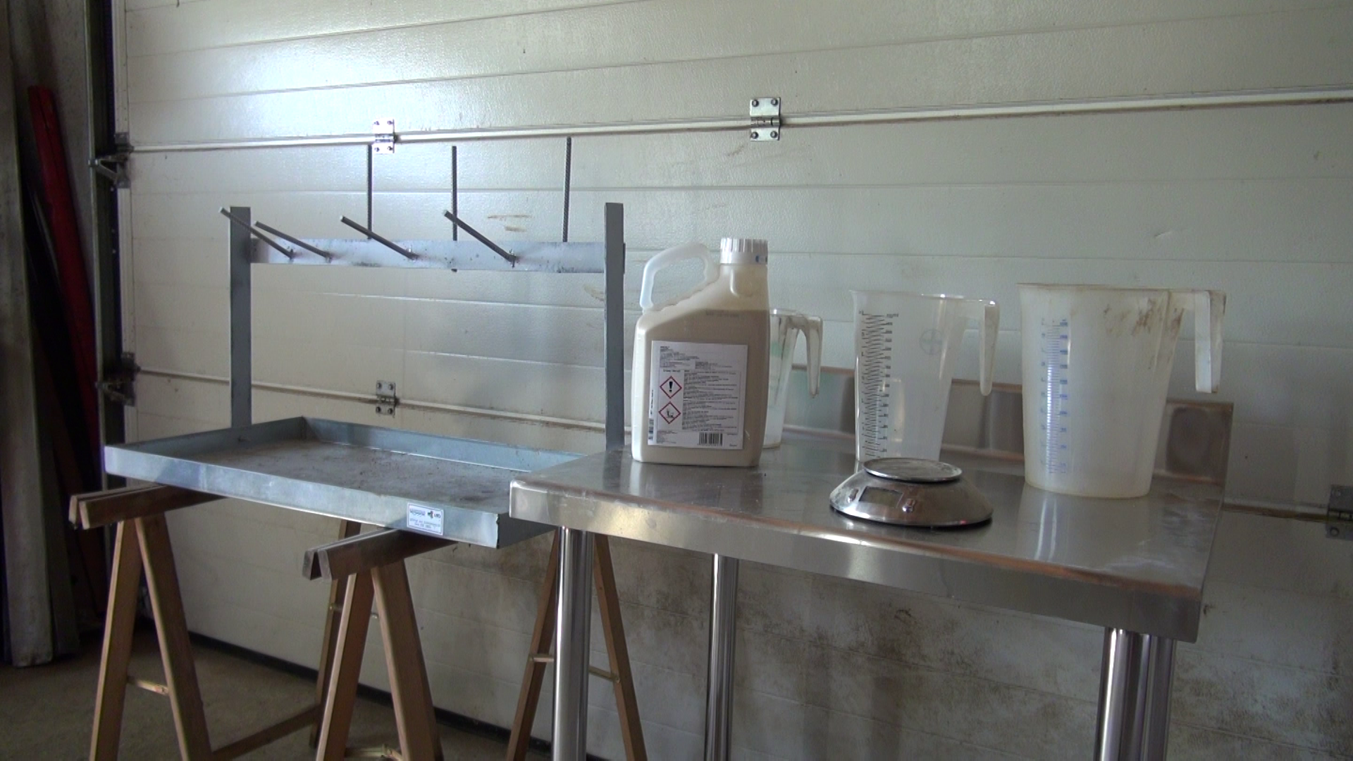Le dosage des produits s’effectue sur l’aire de préparation. Il doit être fait sur une paillasse suffisamment grande, d’une hauteur appropriée, propre et facile à nettoyer. Ceci limite les risques d’incidents ou d’erreurs de dosage. Seuls les produits et les instruments de mesure propres doivent prendre place sur cette paillasse. Après avoir cherché les produits au stockage, jetez un dernier coup d’oeil à la fiche de traitement (dernier contrôle !). Les emballages sont alignés selon leur ordre d’incorporation. On ouvrira un seul emballage à la fois.
