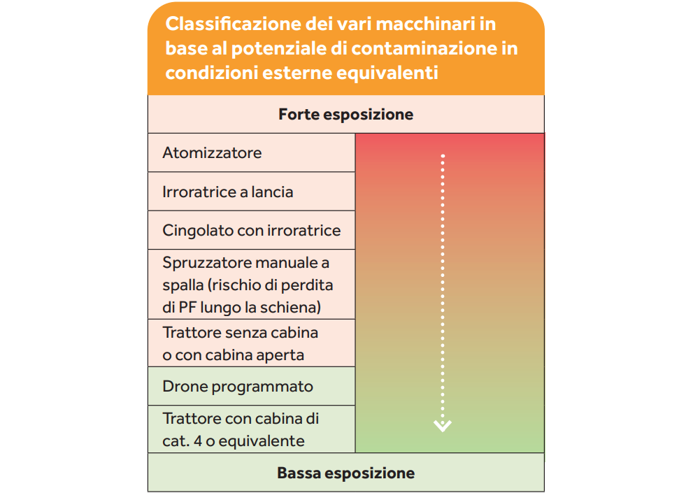 Misure tecniche di protezione: trattore a cabina chiusa ermeticamente, pressurizzata e con aria filtrata